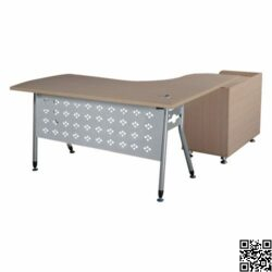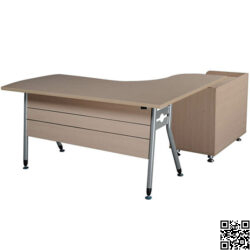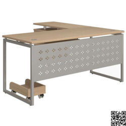Kiểu dáng: Bàn lãnh đạo trưởng phòng Royal. Chân sắt chữ U. Mặt bàn lượn chữ L.Bàn có hộc liền cố định sát đất. Yếm tôn lửng trang trí. Chưa bao gồm kệ CPU và khay bàn phím.