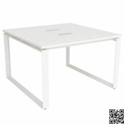 Kiểu dáng: Mặt bàn ghép vuông cho 2 người ngồi đối diện. Bàn có hệ khung chân chữ U, ống chân thép tam giác 60x60x82. Bàn có nắp chụp hộp điện nhựa.