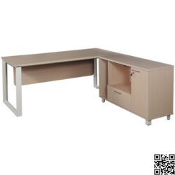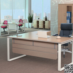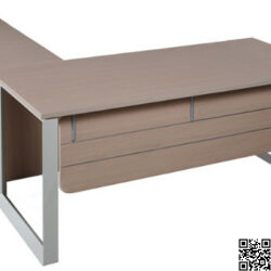 Kiểu dáng: Bàn có tủ phụ đi kèm. Bàn lãnh đạo mặt chữ nhật, yếm treo lửng có nẹp nhôm trang trí. Khung chân chữ U thép tam giác.
