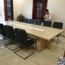 Kiểu dáng: Bàn họp 18-20 người, chân bàn ghép hộp 180mm, mặt bàn 50mm.