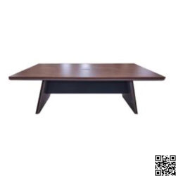 Kiểu dáng: Bàn họp 08-10 người, mặt bàn chữ nhật, chân bàn gỗ vát chéo, yếm lửng giữa. Có 1 nắp hộp điện trên mặt bàn.