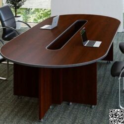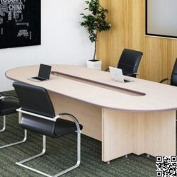 Kiểu dáng: Bàn họp 6-8 người, chân bàn gỗ, mặt bàn lượn oval