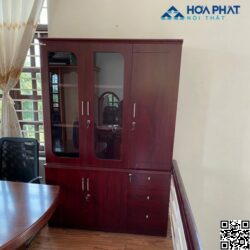 Kiểu dáng: Tủ 3 buồng. Phần trên 2 khoang cánh kính, 1 khoang treo áo. Phần dưới có 3 ngăn kéo và 2 cánh mở.