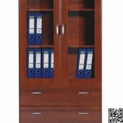 Kiểu dáng: Tủ 2 buồng. Phần trên là khoang 2 cánh kính khung gỗ, viền khung gỗ cách điệu mái vòm. Phần dưới là 3 ngăn kéo.