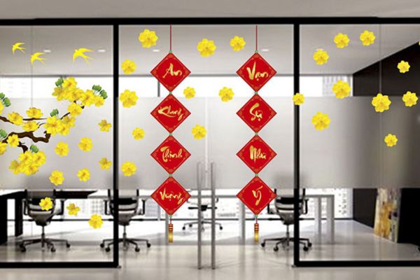 Trang trí Tết văn phòng bằng decal dán kính và tường